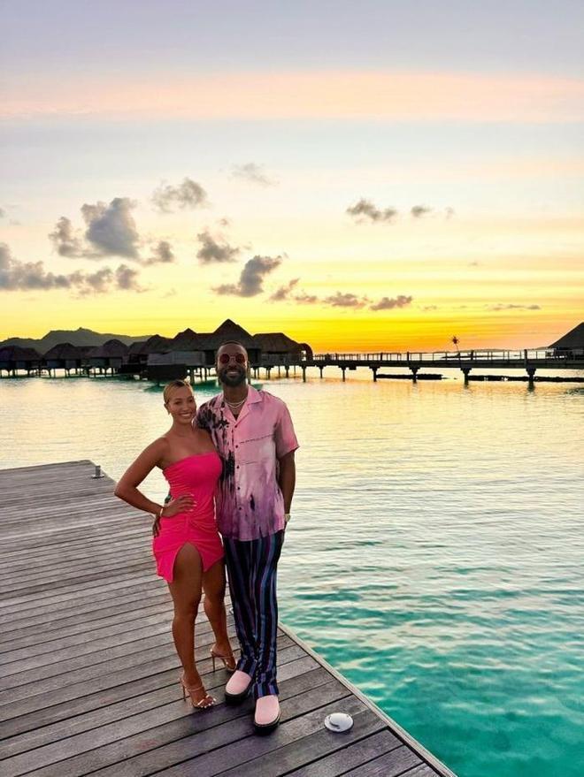 北京时间9月1日,前NBA球员肯巴-沃克的妻子晒出了自己与丈夫共同度假的照片,两人非常开心。